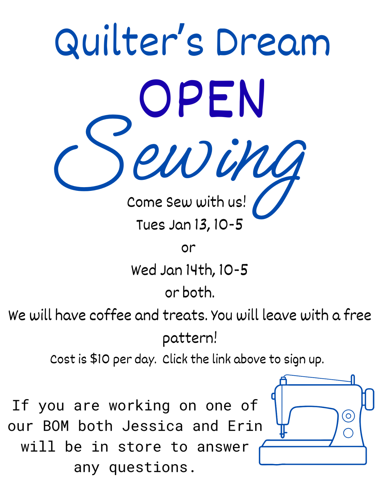 Tuesday Open Sewing Jan 13th